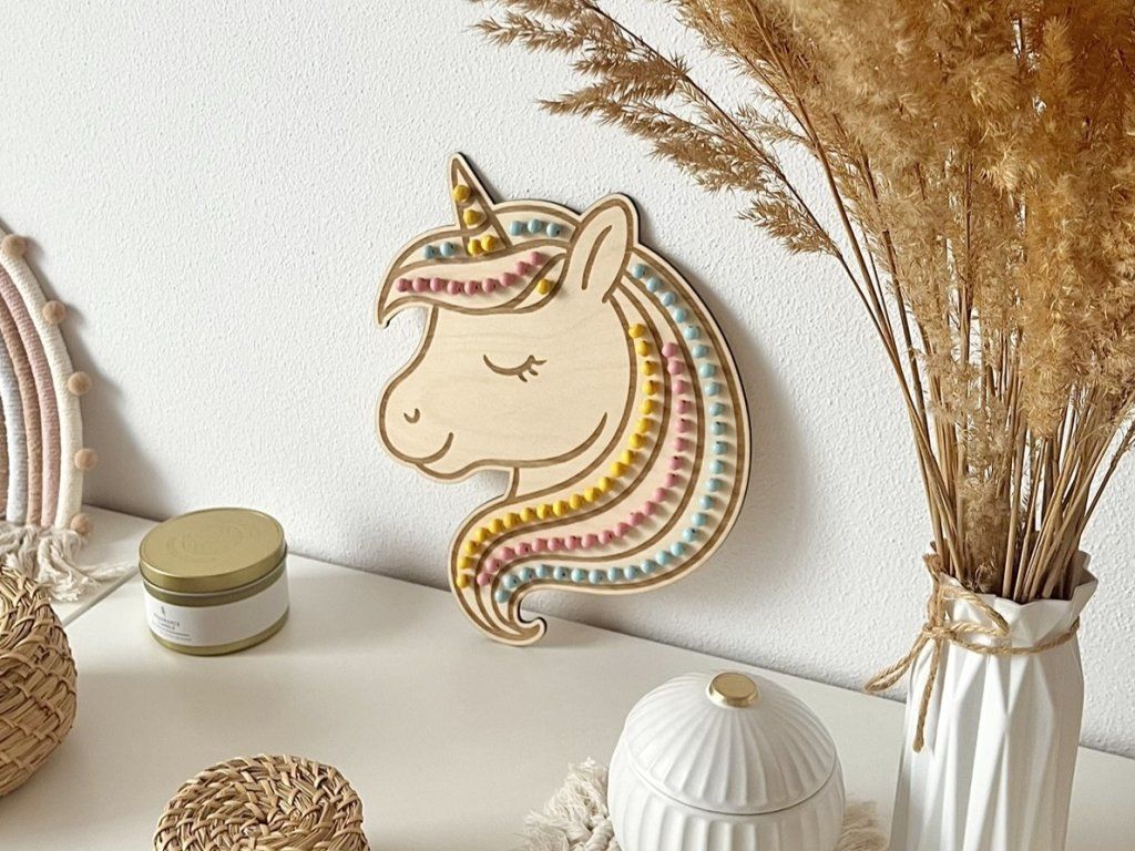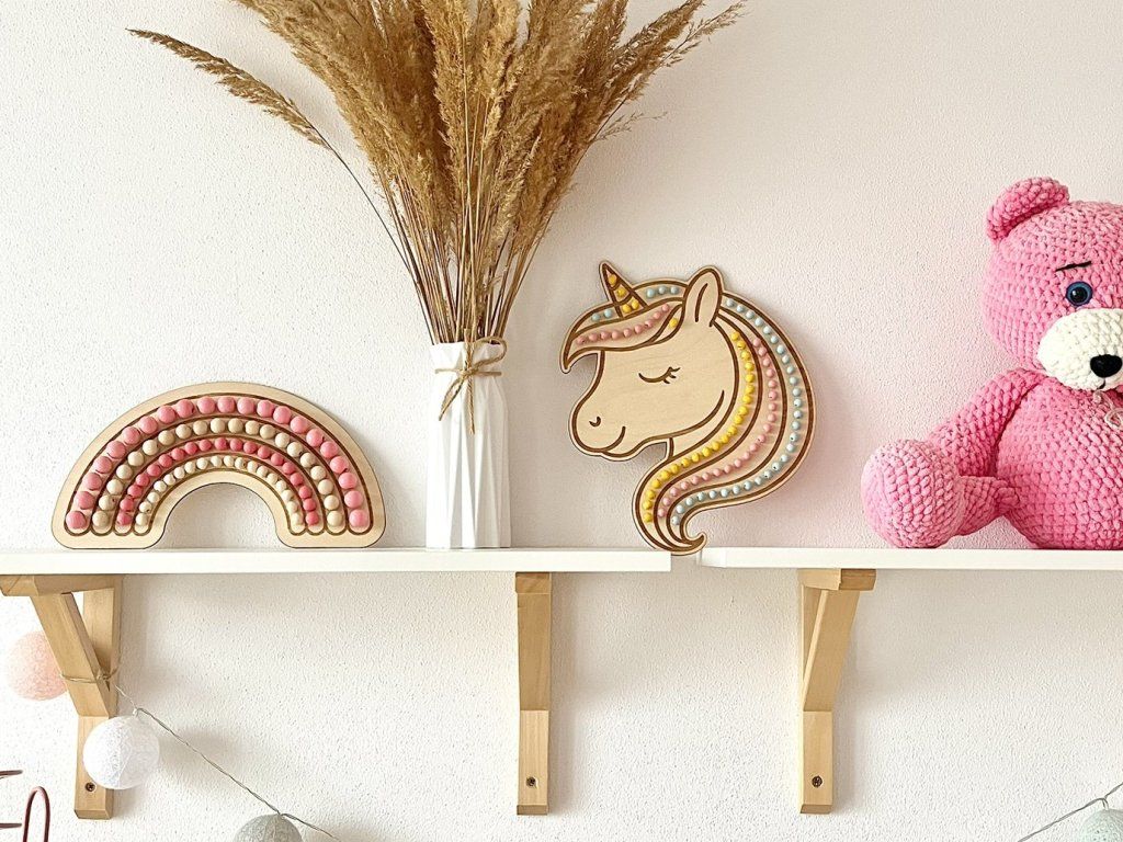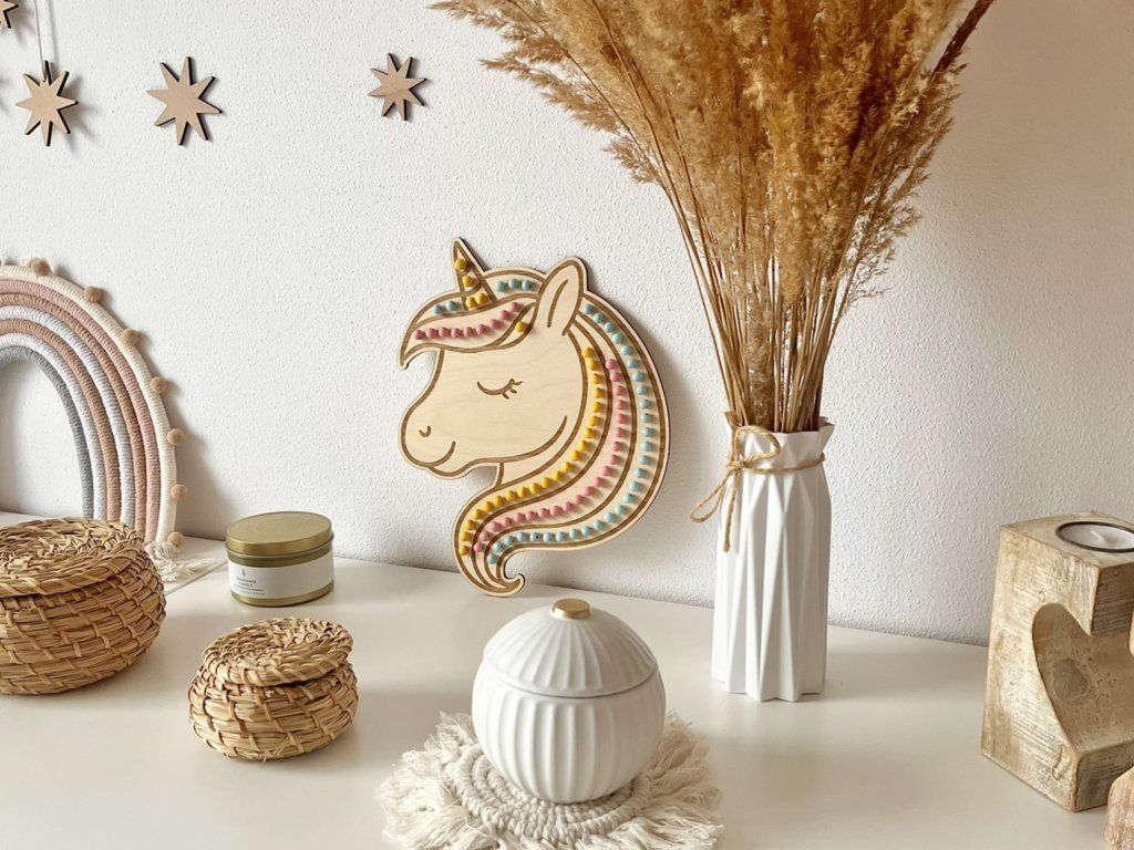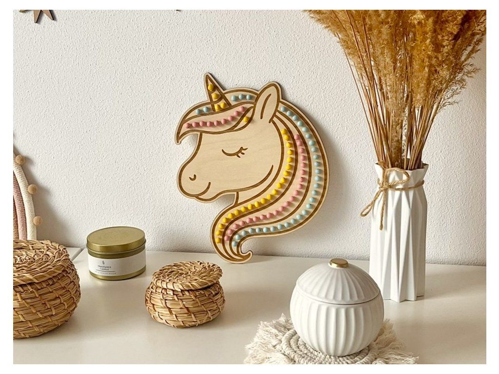 Jemná dětská dekorace ve tvaru jednorožce, která rozzáří každý dětský pokojíček.